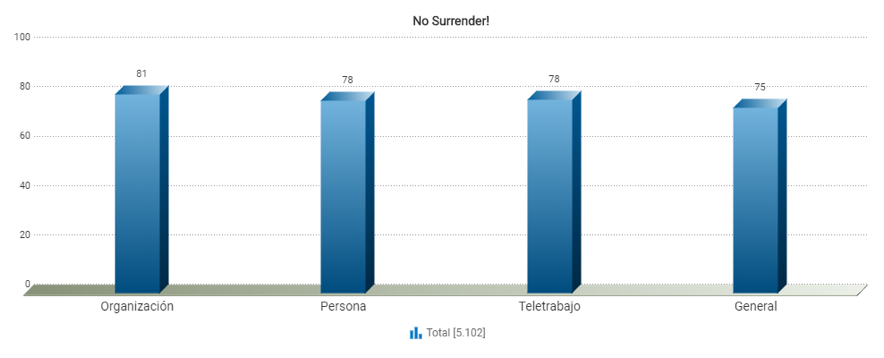 Una vez transcurridos dos meses desde el inicio del proyecto No Surrender, hemos querido recopilar los resultados más significativos hasta la fecha en este blog. Con la intención de poder ofrecer datos de benchmarking, hemos creado una macroencuesta formada por 25 de las empresas participantes en la encuesta COVID-19, elegidas en función de su sector y tamaño, que en conjunto incluyen respuestas de 5102 trabajadores.